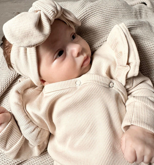 Babykleding - Geboorte/boxpakje unisex zand velour