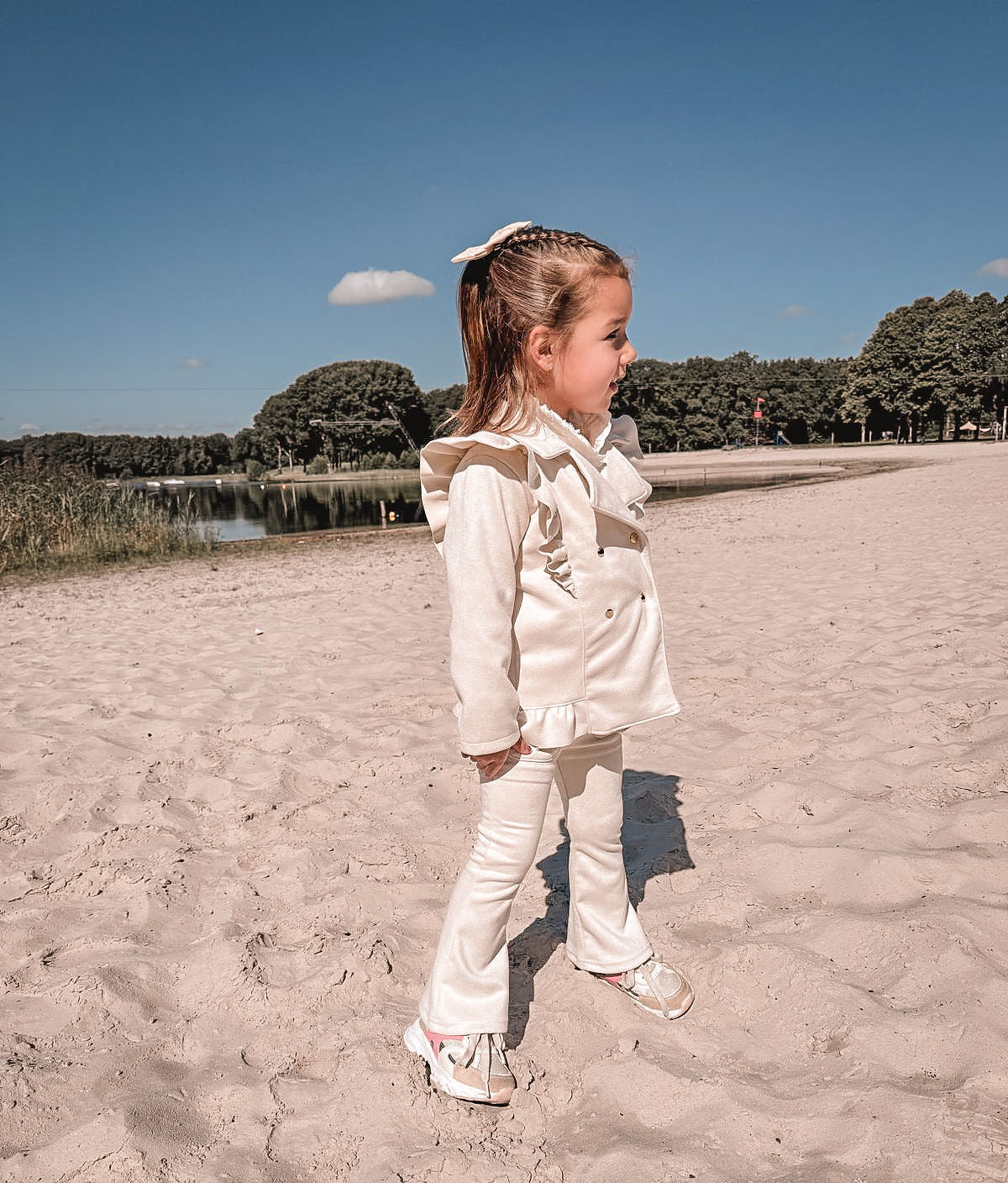 Bestel nu de Flared Suède Julia in beige en geef jouw meisje een elegante en zachte look.