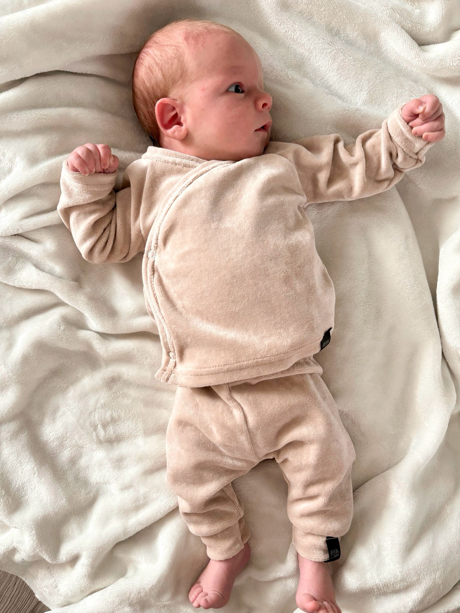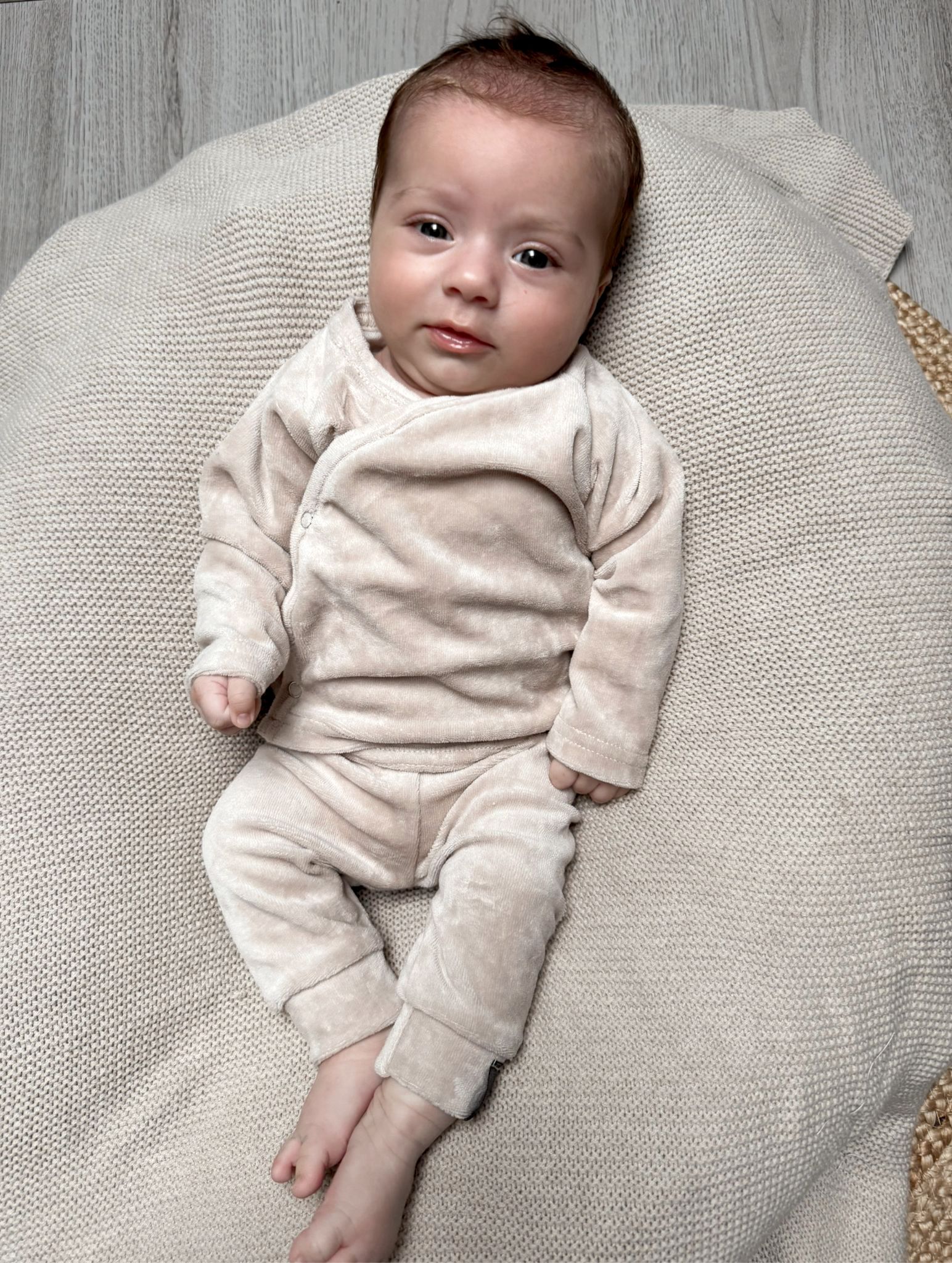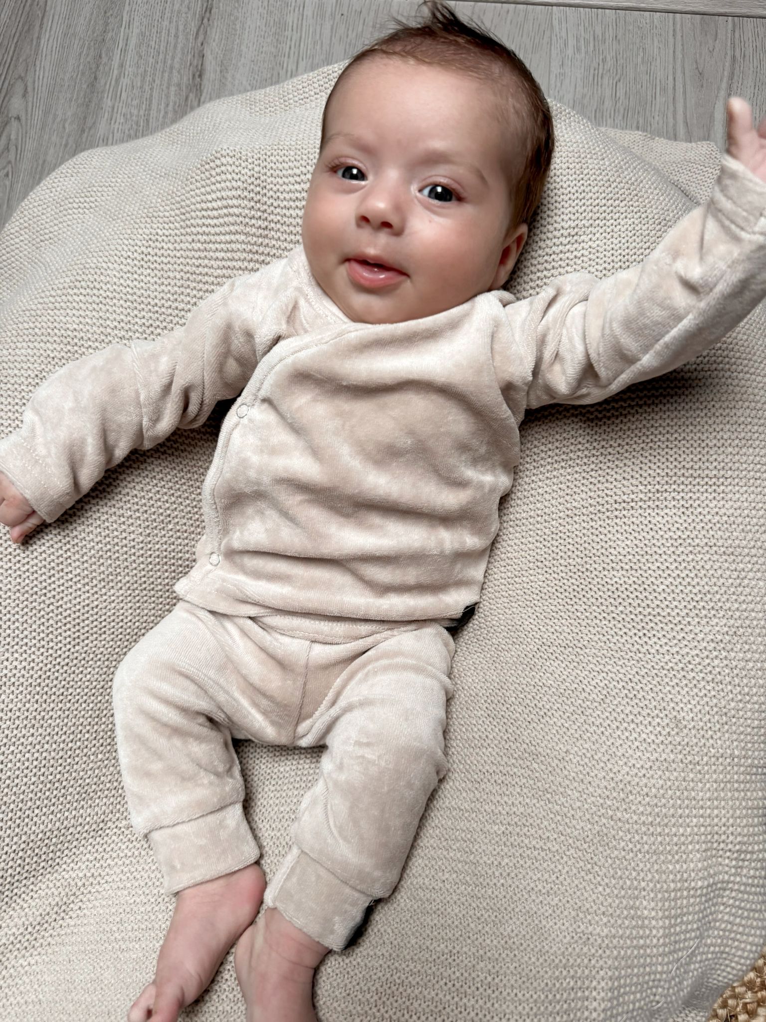 Babykleding - Geboorte/boxpakje unisex zand velour