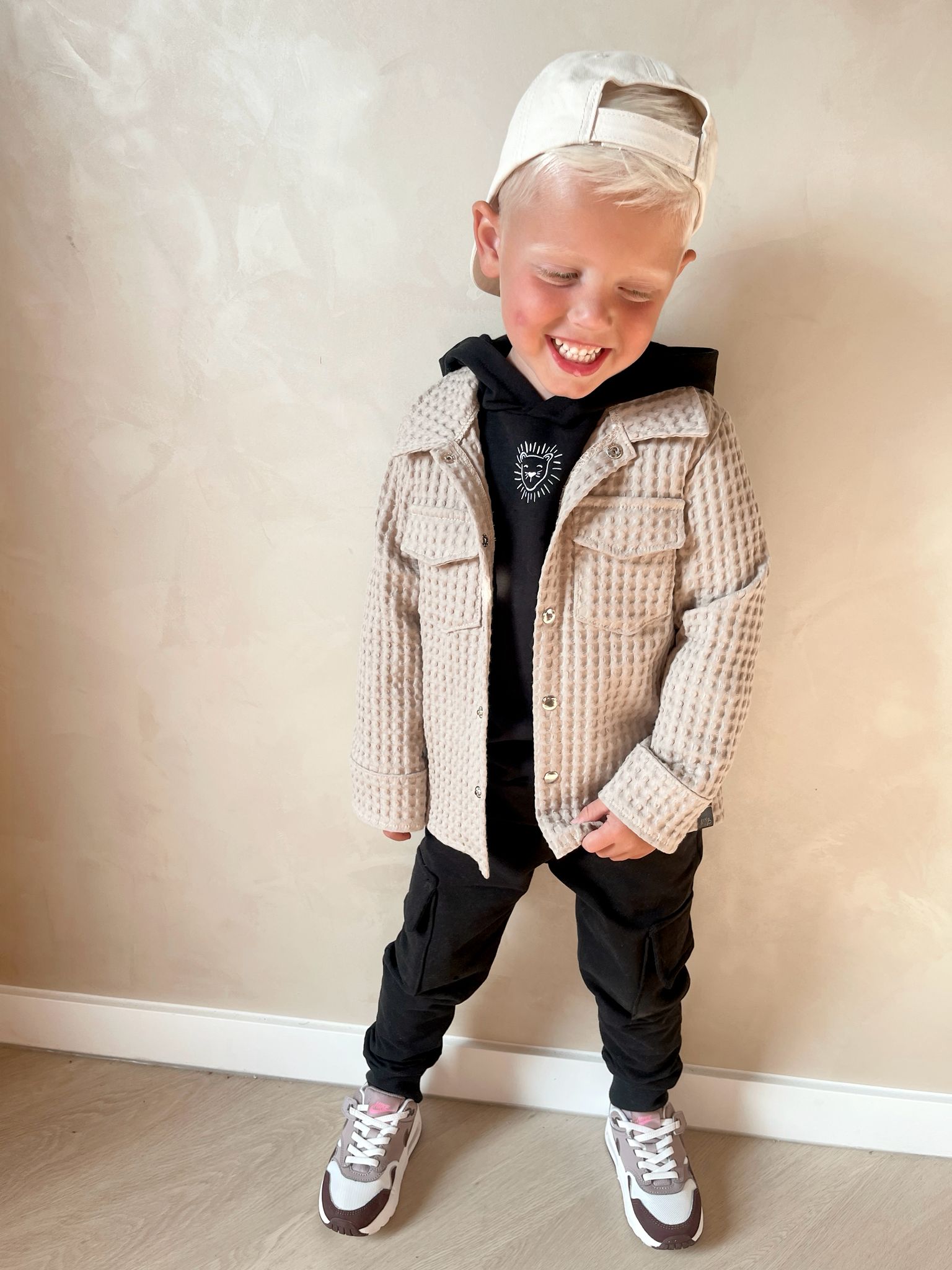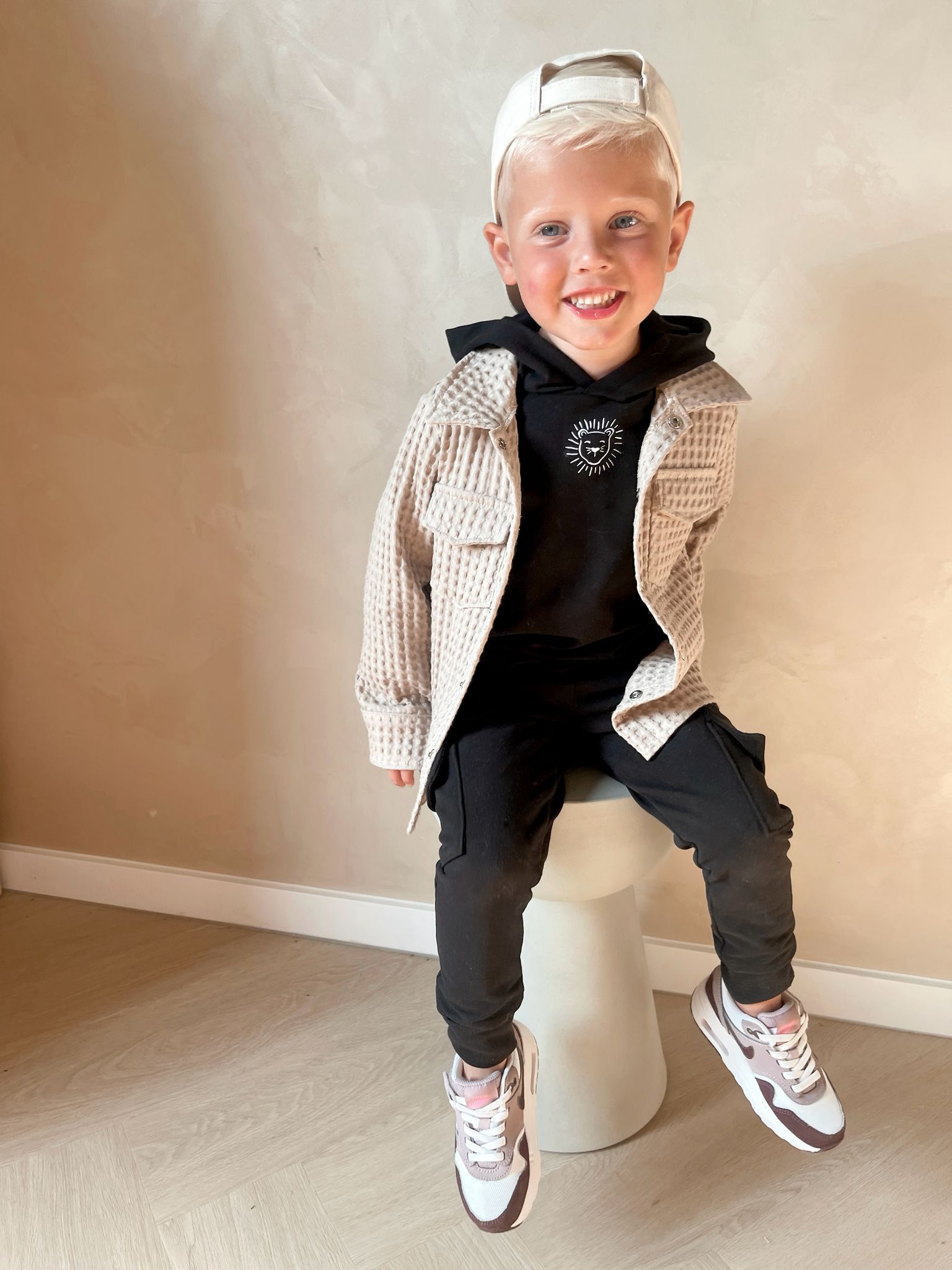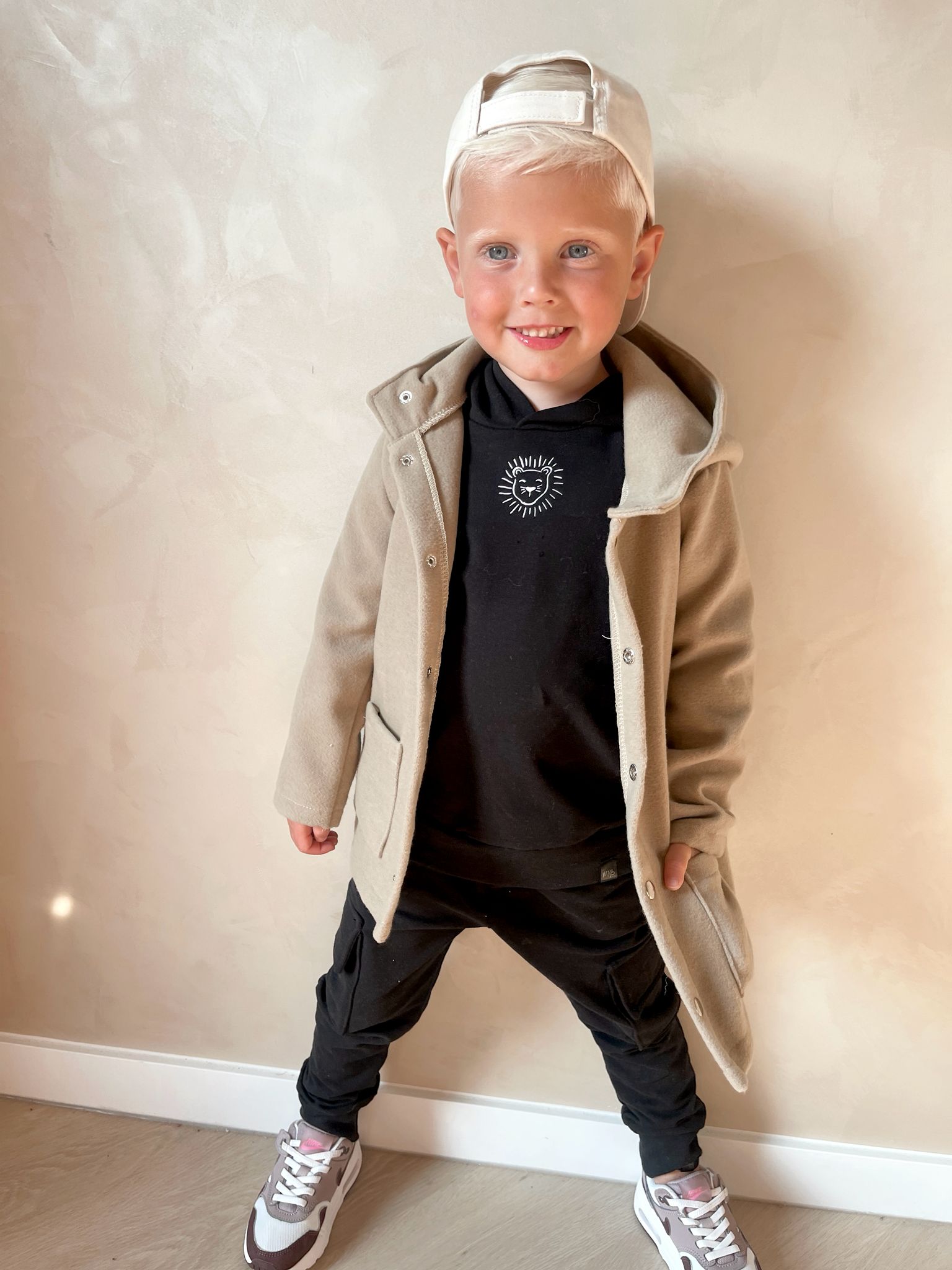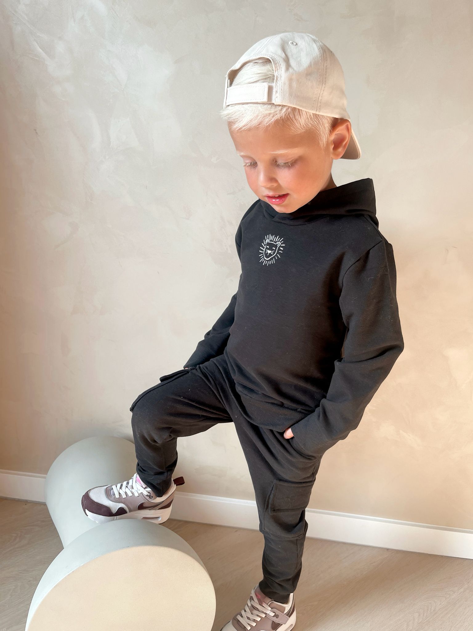 Bestel nu de Hoodie Joren in zwart en geef je zoon de perfecte mix van comfort en stoere stijl.