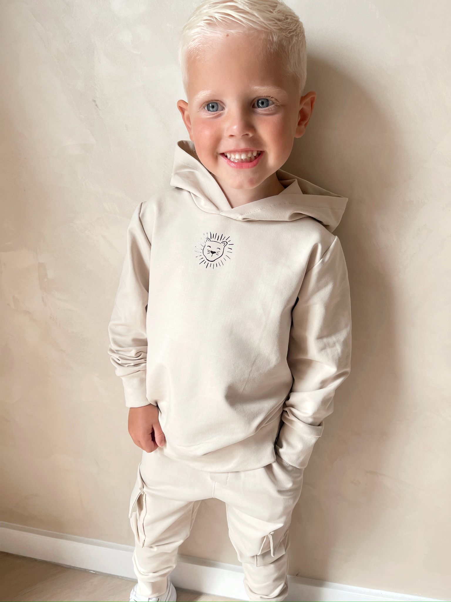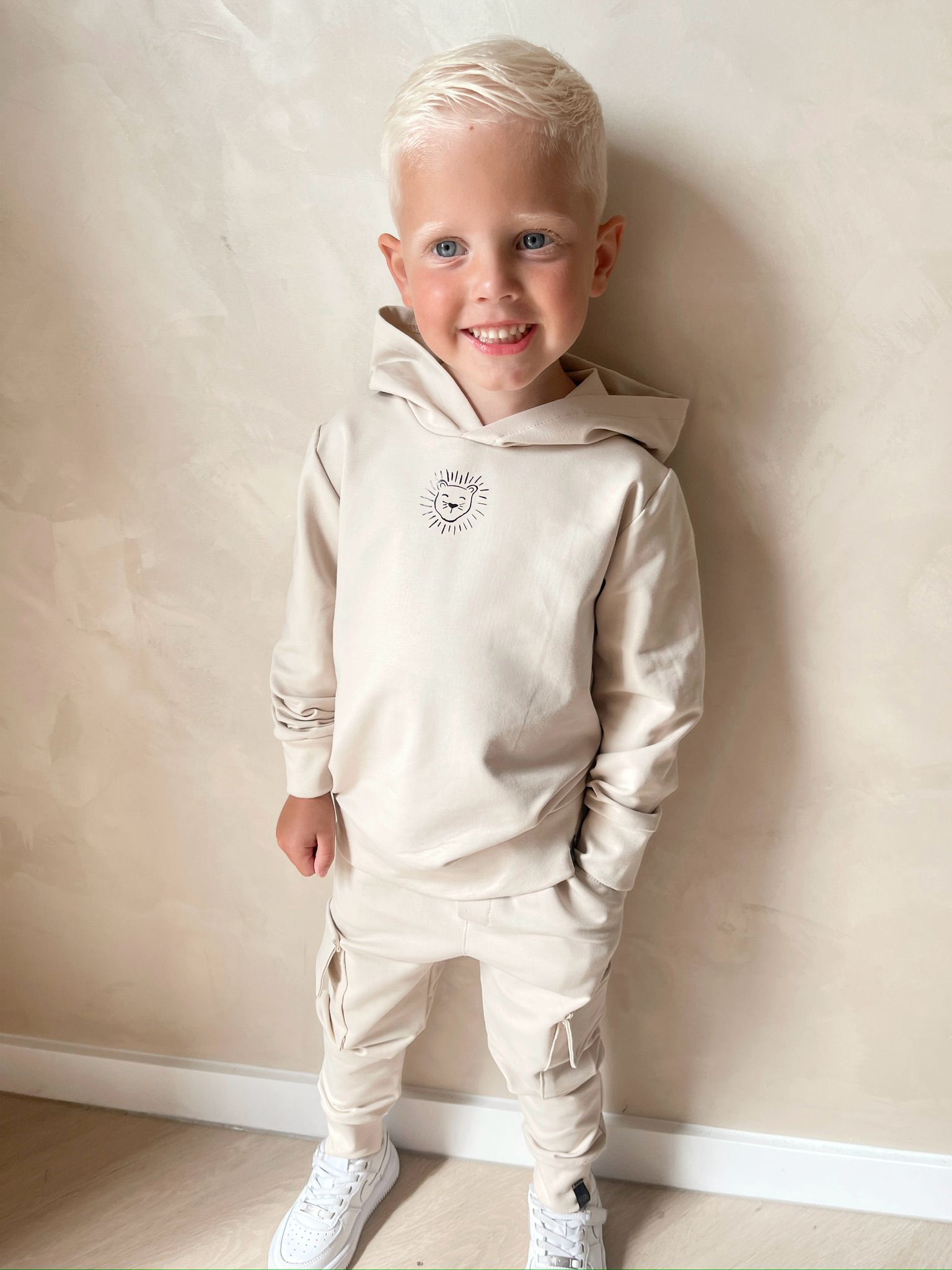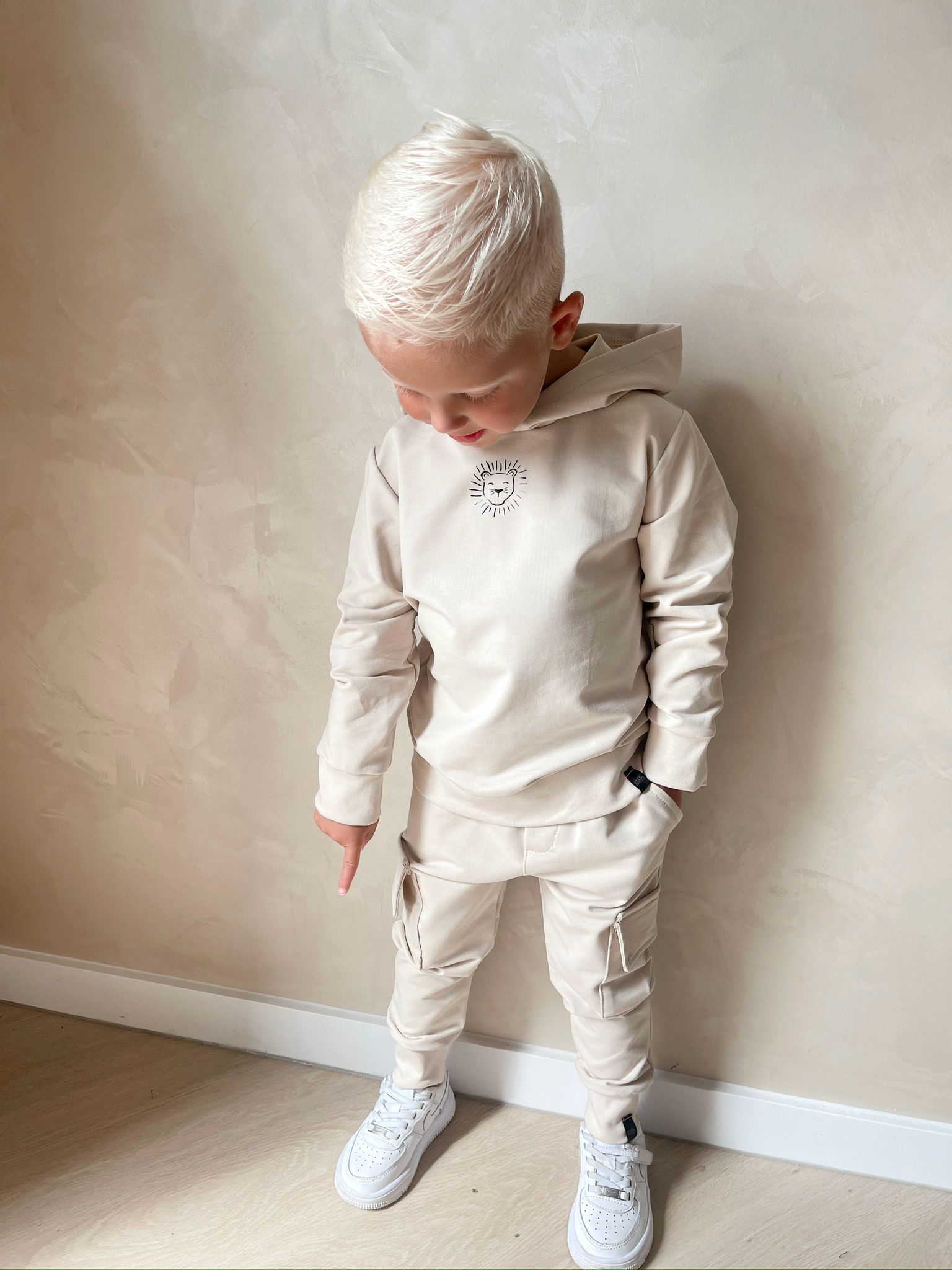 Bestel nu het Joggingspak Liam in beige en geef je jongen een comfortabele en stoere look voor elke dag.