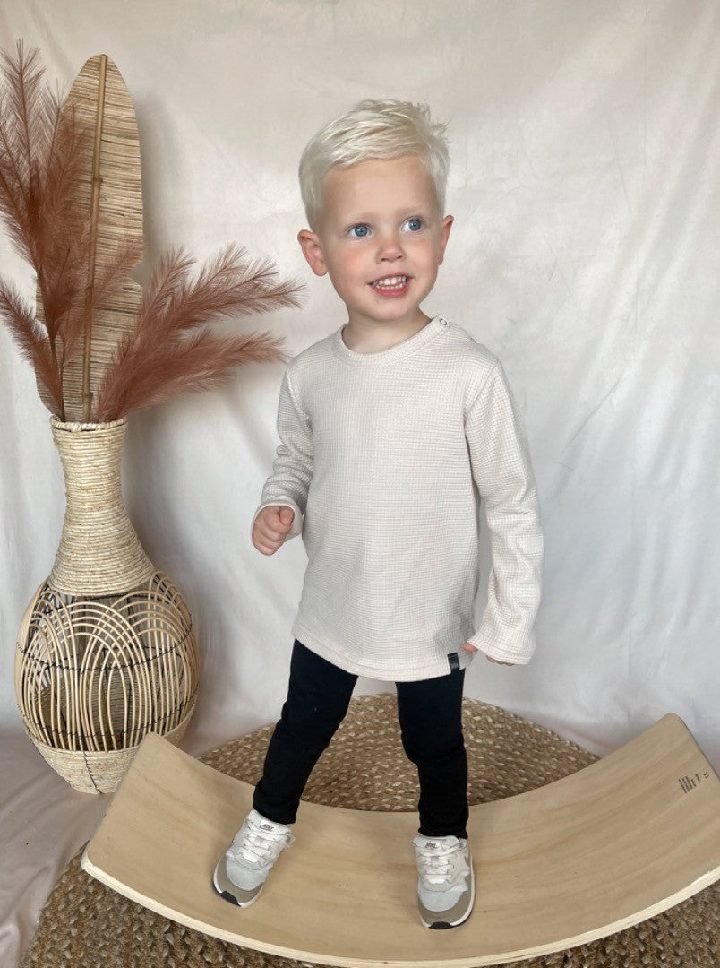 Babykleding: Longsleeve Wafel Chez Light Sand – Stijl en Comfort voor je Kleintje