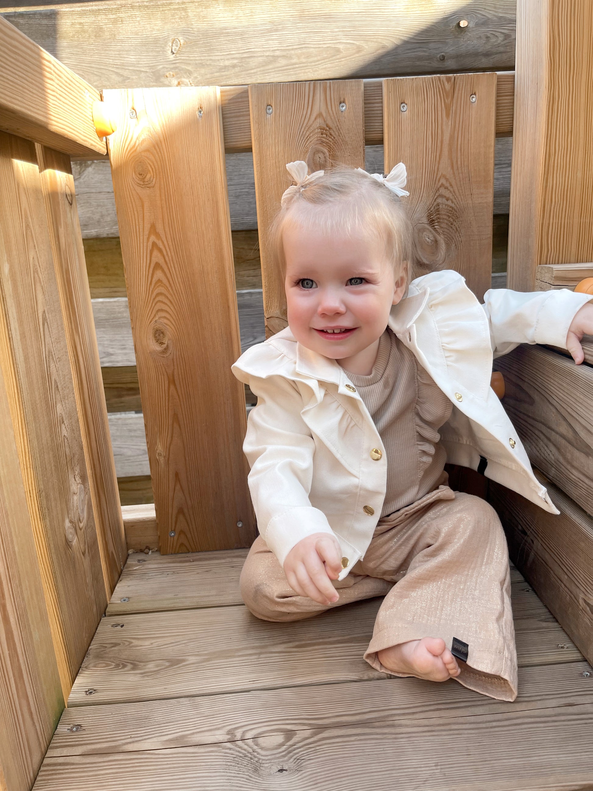 Schattige Ruches voor Extra Charme: De speelse ruches op de schouders voegen een vleugje elegantie en schattigheid toe aan het shirtje. Het eenvoudige ontwerp krijgt hierdoor een stijlvolle upgrade, waardoor je kleintje er altijd feestelijk en trendy uitziet.