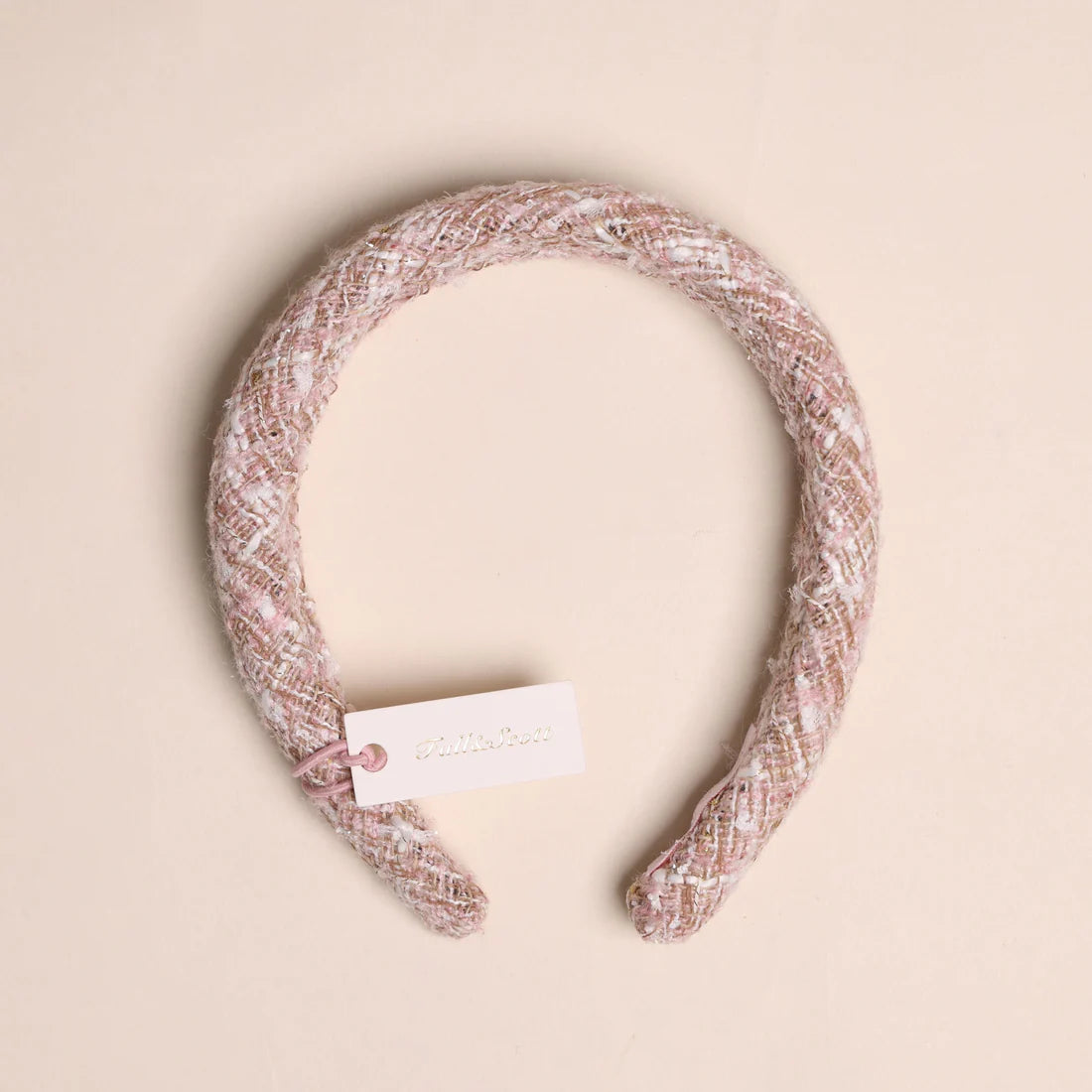 Luxe diadeem van roze tweed met ruit voor meisjes.